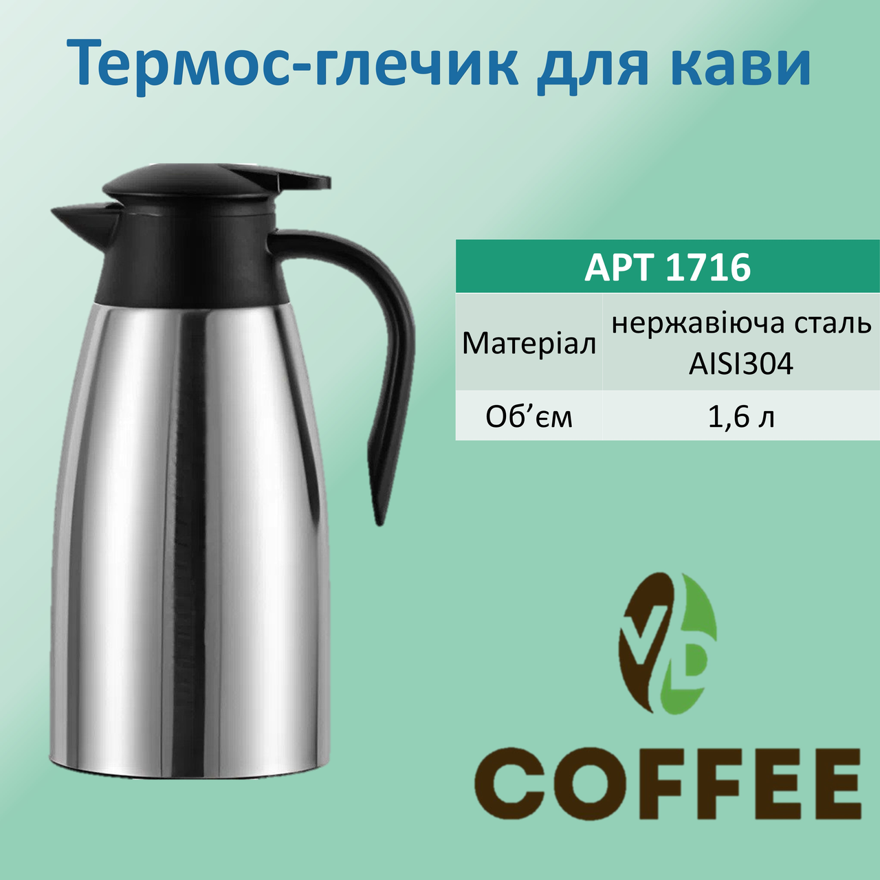 Термос-глечик для кави, 1,6 л., нержавіюча сталь AISI304